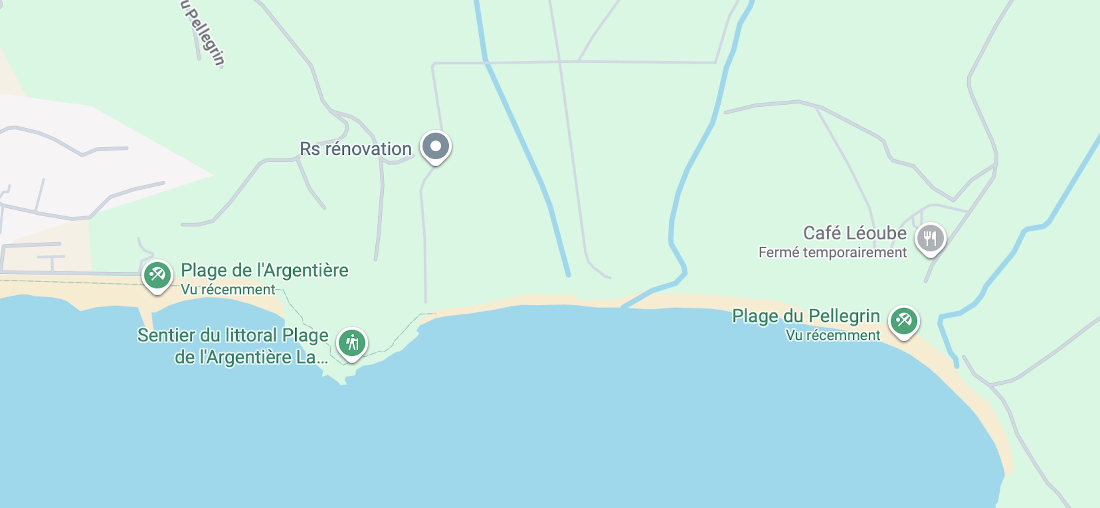 L'accès se fait à pied par la plage de l'Argentière. Les deux plages se touchent mais un chemin escarpé les séparent.